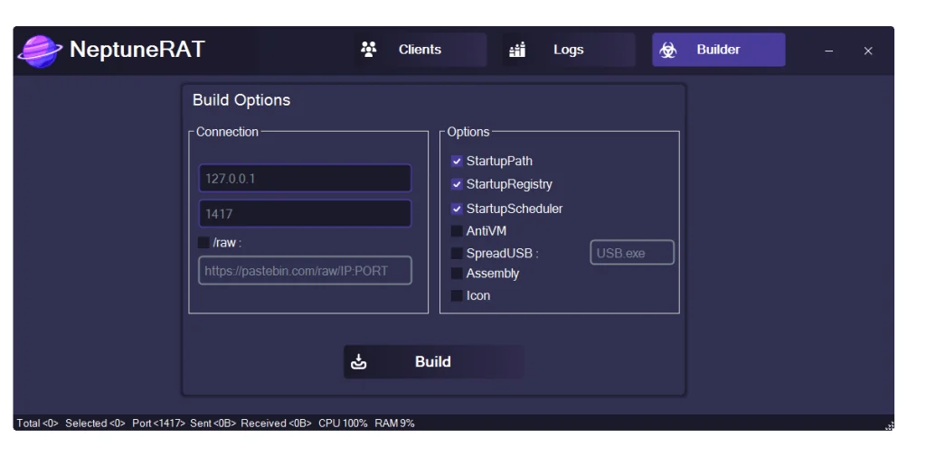 NeptuneRAT V2.0 advertises an extensive set of remote control, surveillance, theft, evasion, and destructive features that align closely with advanced malware capabilities observed in real-world threats. While labeled for educational use, its toolkit demonstrates techniques commonly abused by cybercriminals.