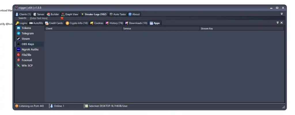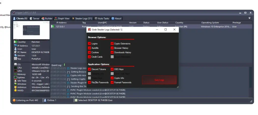 Nigger RAT v1.8 focuses heavily on stealing sensitive information.